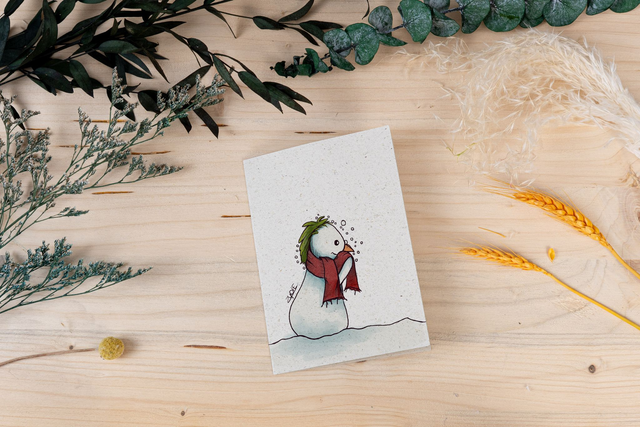 Mit diesem niedlichen Schneemann zaubert die Karte ein Lächeln ins Gesicht. Perfekt für winterliche Grüße mit einem Hauch von Humor. Gedruckt auf umweltfreundlichem Graspapier, erhältlich als Postkarte oder Klappkarte mit Umschlag.