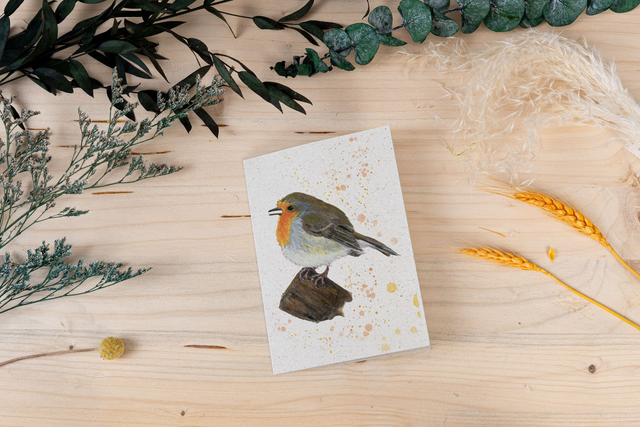 Graspapierkarte - Rotkehlchen - flauschig