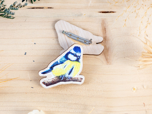 Diese zauberhafte Brosche zeigt eine handgezeichnete Blaumeise, die mit ihren strahlenden Farben jedes Outfit aufwertet! 🐦✨