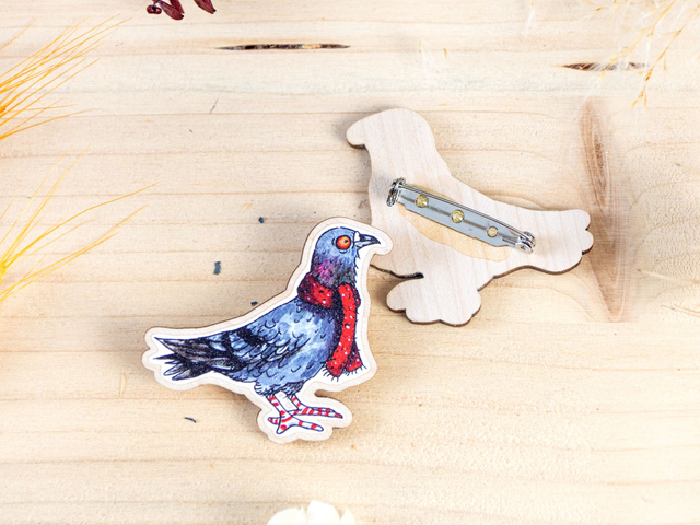 Tauben Holz-Brosche – Dein humorvolles Accessoire